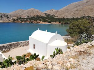 You have plenty of free time so you can choose to walk approx. 500 m to the most popular beach 🏖 Pondamos with fine white sand. The road to the right will lead you straight to the beach! It is an organized with beach loungers and umbrellas, and even a tavern with local delicacies . Or you can turn left, and walk through the colorful small houses and after approx. 500m reach the Ftenagia beach with its emerald waters, from where you can see Rhodes’ silhouette of Rhodes in the horizon. Few umbrellas are available and a gorgeous taverna for a cold drink 🍹and seafood🦐 .